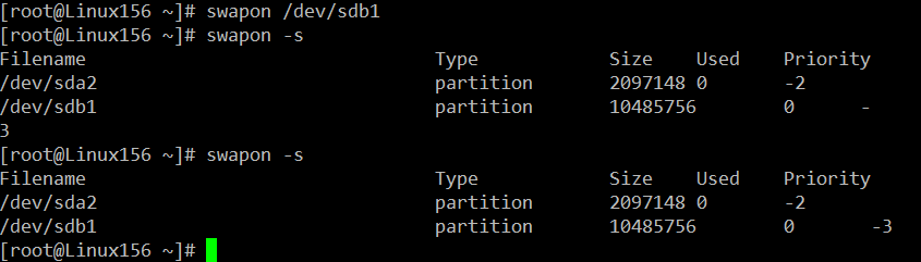 - swapon -s : 현재 swap 상태를 확인한다