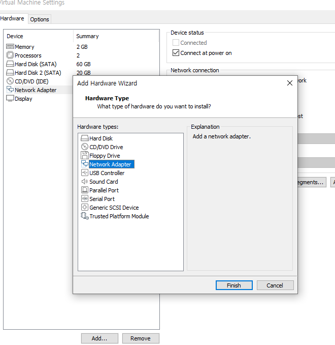 VM에 렌카드를 추가해서 nat로 설정.ip주소 추가하
