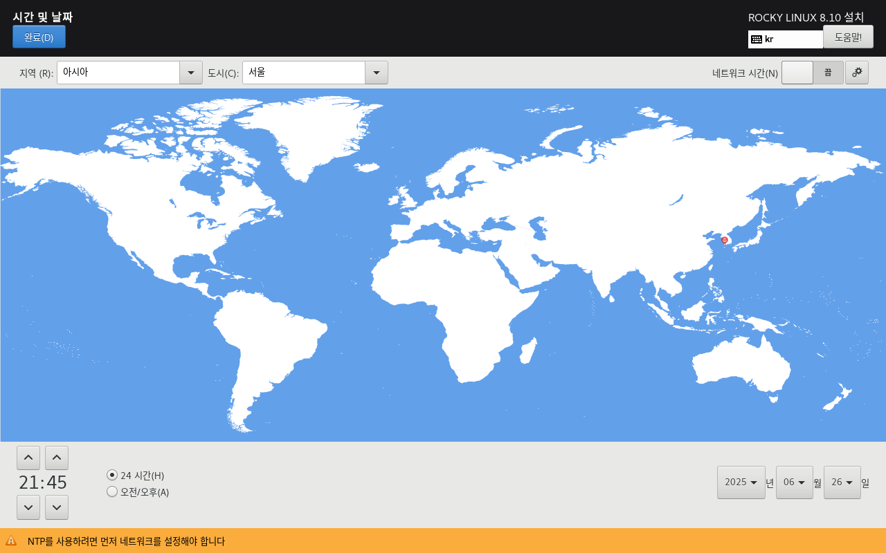 한글 설정을 먼저 해주고 시간 설정을 해줍니다.(아시아 | 서울)