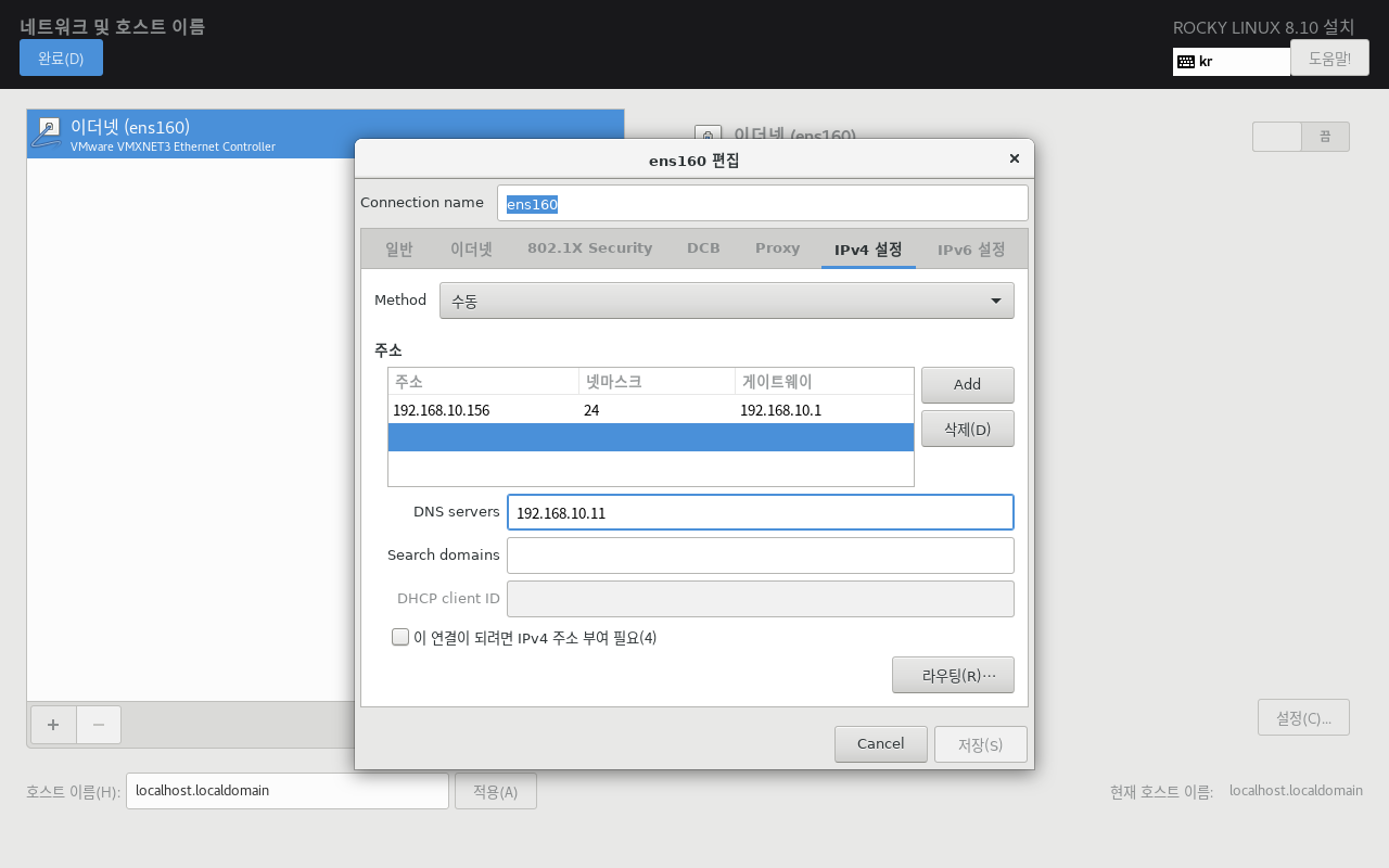 밑에 호스트이름 바꾸기→ 설정 클릭 → ipv4클릭 → dhcp수동으로 바꾸기 → ip입력하고 저장 → 이더넷 켜기