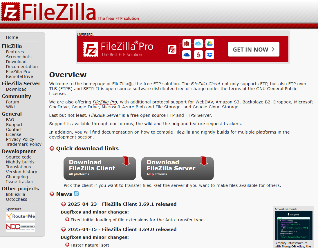 집에서 사용할 거면 https://filezilla-project.org/ 이쪽에서 다운로드