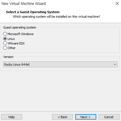 우리는 Rocky Linux를 사용할 것이기 때문에 Linux체크해주고 밑에서 Rocky Linux 64-bit를 선택합니다.