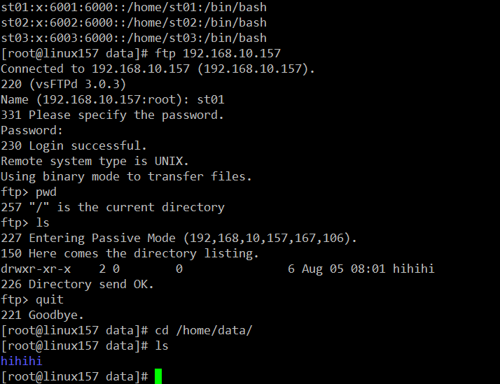 mount --bind /home/data /home/st01를 사용해서 홈 디렉터리는 /home/st01이지만 /home/data에 접근한 것이 됩니다.