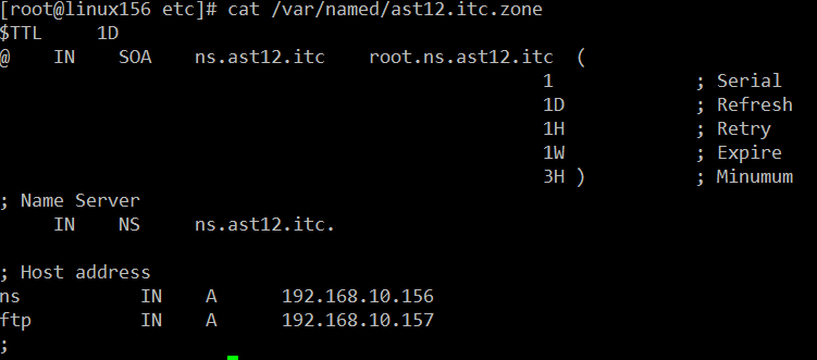 vi /var/named/ast12.itc.zone 파일 생성해 주기