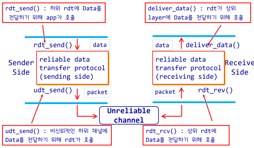 rdt_rcv(packet) → 하위 레이어에서 패킷이 올라오는 이벤트가 발생