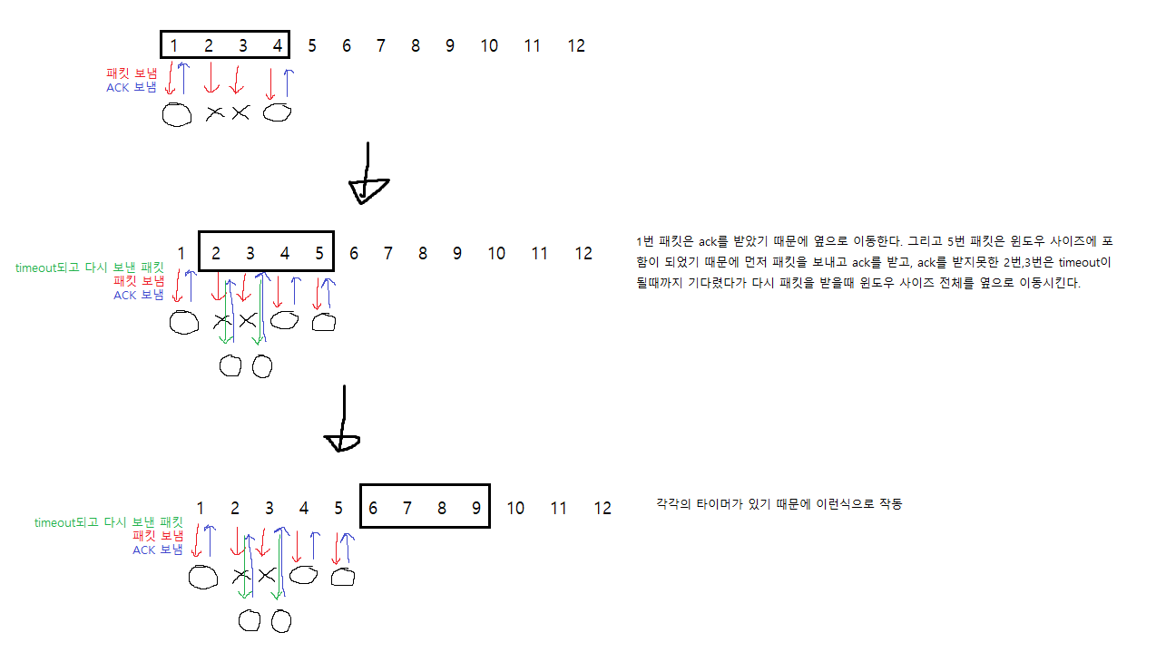 그래서 timeout이 발생해도 모든 pkt을 보내지 않아도 된다.