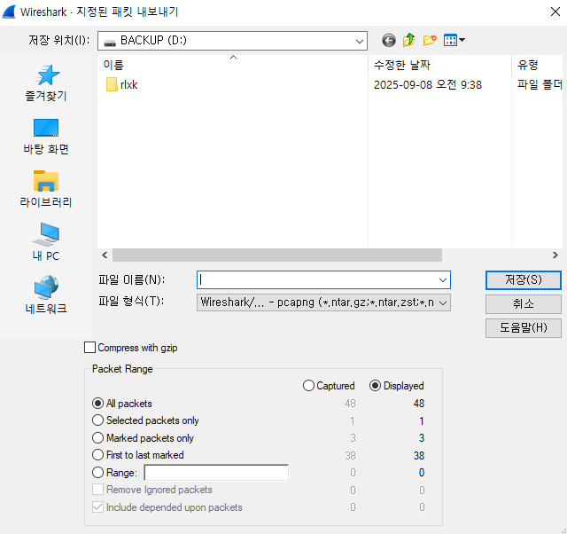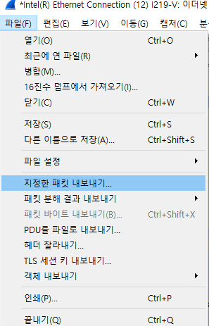 지정한 패킷 내보내기를 통해서 내가 지정한 패킷만을 저장할 수도 있다.