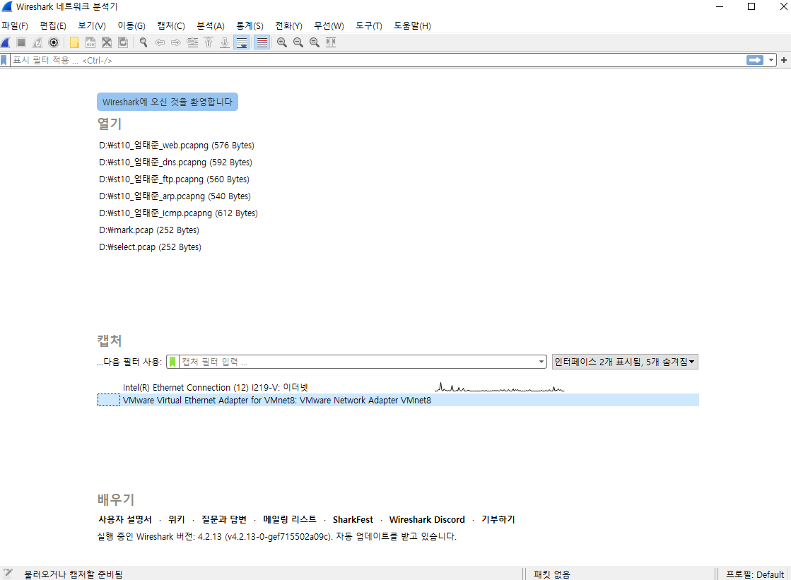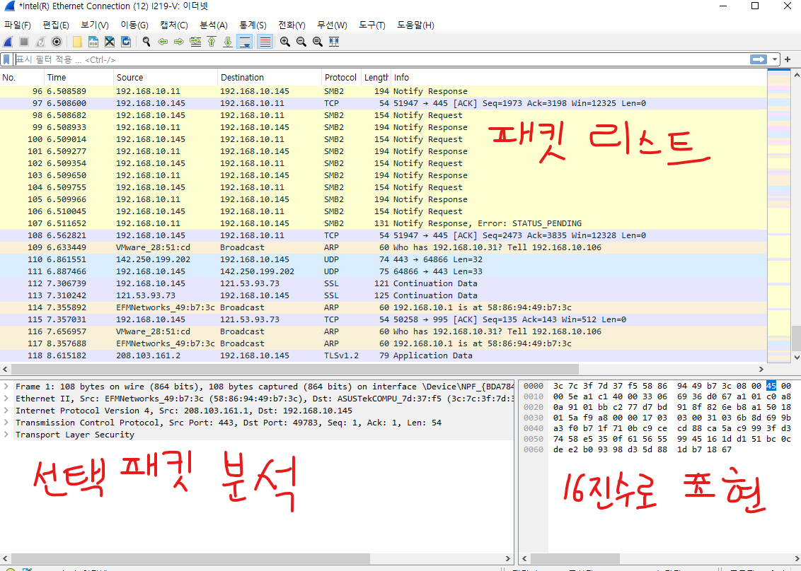 와이어샤크 = 캡처받은 패킷을 화면에 뿌려주는 역할을 하는 애.