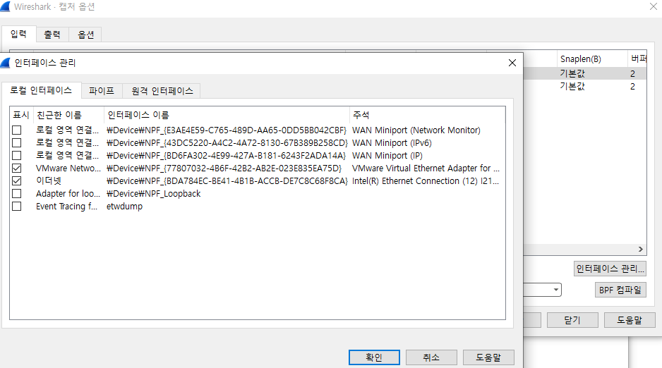 npcap, winpcap = 실제 패킷을 캡처받는 놈.