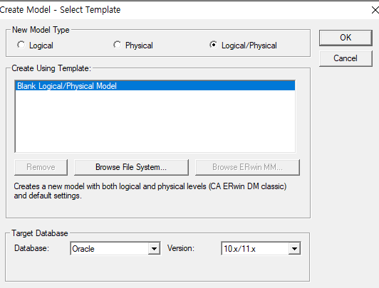 file → new → Logical/Physical클릭 → ok