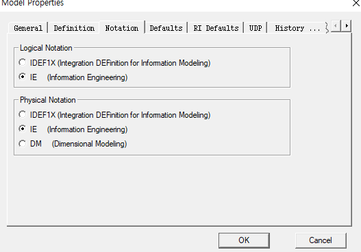 model → model properties → notation → 두개 다ie로 설정.